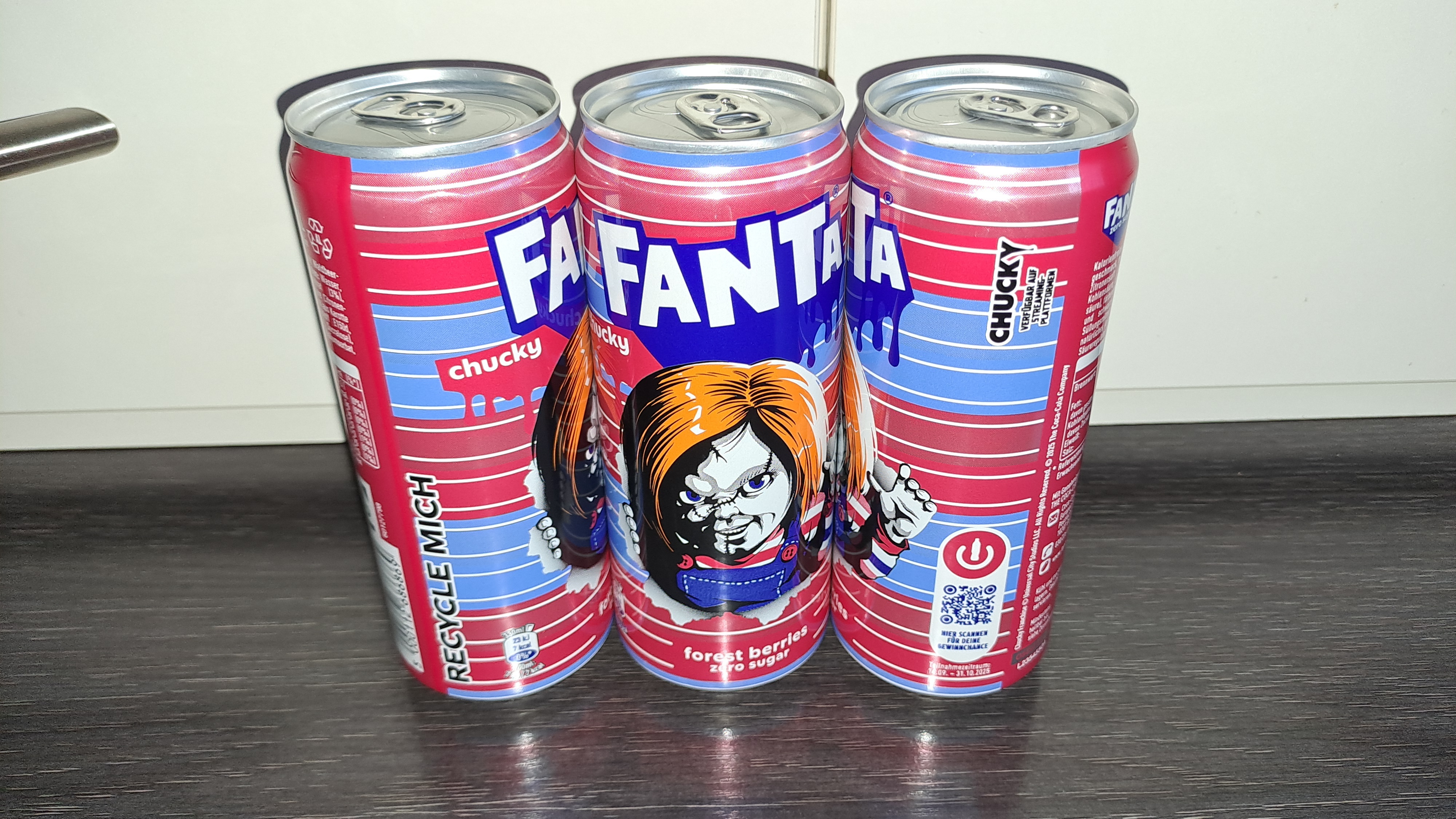 Heute morgen habe ich mir ein Sixpack der "Chucky-Fanta" bei Penny geholt... gibt es dort seit heute im Sixpack für 3,99 im Angebot. Und es ist tatsächlich die altbekannte Sorte "Wild Berries" die einen hier erwartet. Wirklich sehr schade, das man diese Sorte nicht mit vollem Zucker rausgebracht hat. Schmeckt aber auch als Zero annehmbar... besser als nichts.